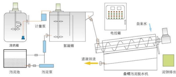 疊螺污泥脫水機(jī)工藝流程圖